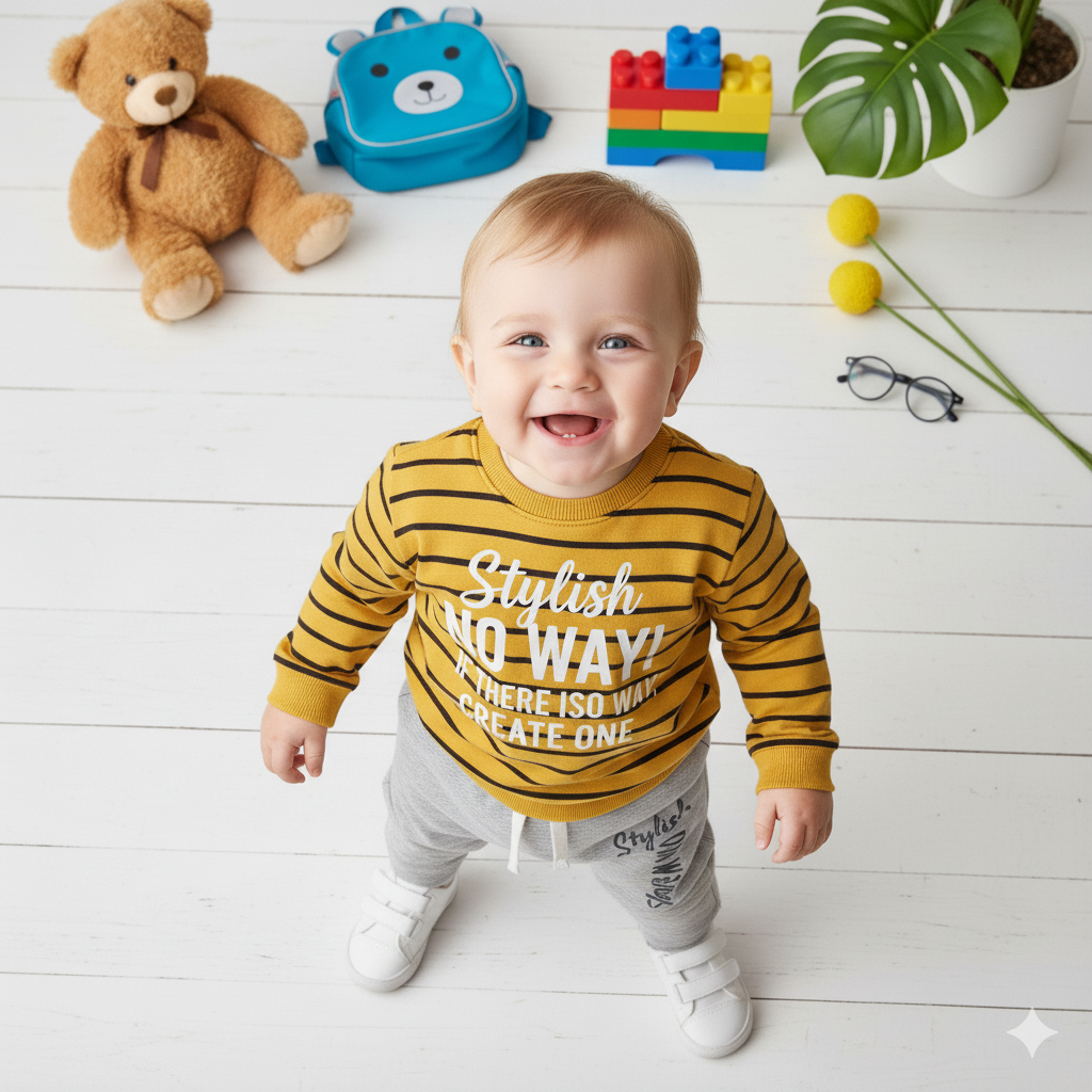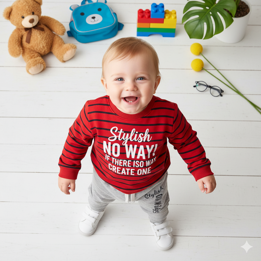 Keep your little one warm and comfy this winter with our French Terry Shirt and Trouser Set, specially designed for babies aged 0 to 1 year. Crafted from soft and breathable French terry fabric, this set provides gentle warmth without being heavy, perfect for your baby’s delicate skin.